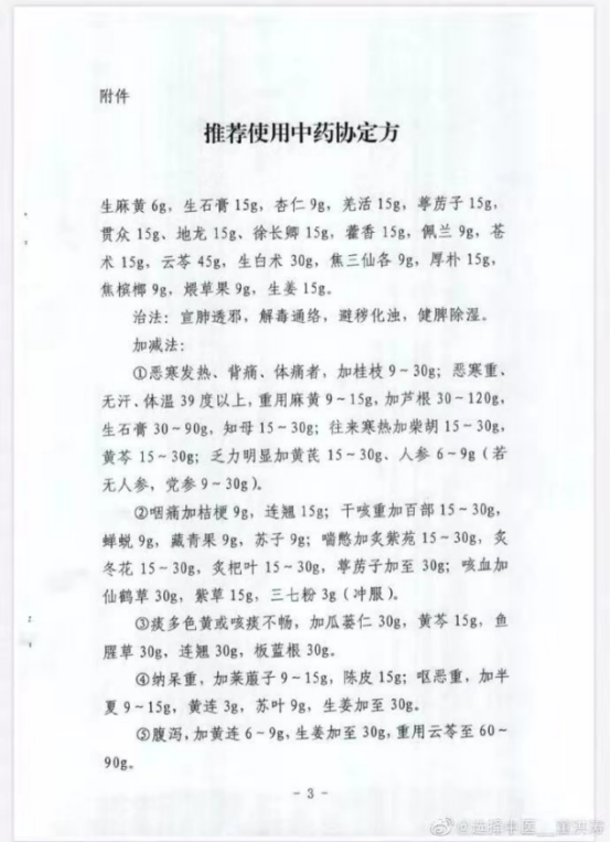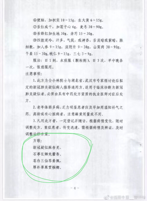这首新的汤头歌诀来自疫情最重的武汉市新冠肺炎防控指挥部医疗救治组《关于在新型冠状病毒感染的肺炎中医药治疗推荐使用中药协定方的通知》中,通俗易懂,易记易学,值得点赞。