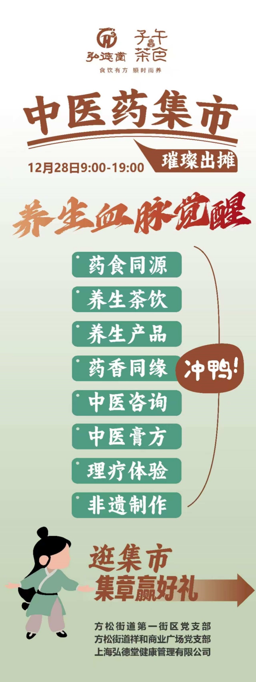 庆典活动的高潮之一无疑是中医药文化集市的开启。在子午茶食餐厅外广场,多位中医药专家亲临现场,为市民提供免费健康问诊服务。同时,集市上展示了多种养生茶饮、中医膏方等健康产品,市民们不仅可以体验香疗、理疗等中医特色疗法,还能亲手制作中医药非遗产品。这一活动不仅丰富了庆典内容,更为市民提供了一个深入了解中医药文化、体验中医药魅力的平台。中医药集市上,人头攒动,市民们纷纷驻足咨询、体验,对中医药文化表现出了极大的热情和兴趣。