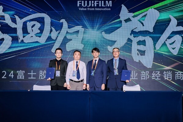 经过数月筹备、重重磨合,终于在本次大会上,由富士胶片(中国)投资有限公司副总裁、医疗系统事业部总经理铃木源司先生和索诺声超声产品创新事业部事业长王鹏程先生作为代表,在全体经销商伙伴们的见证下,分别与英国MedaPhor Ltd. 和上海兰甲医疗科技有限公司的代表完成了未来市场战略合作协议的签署。