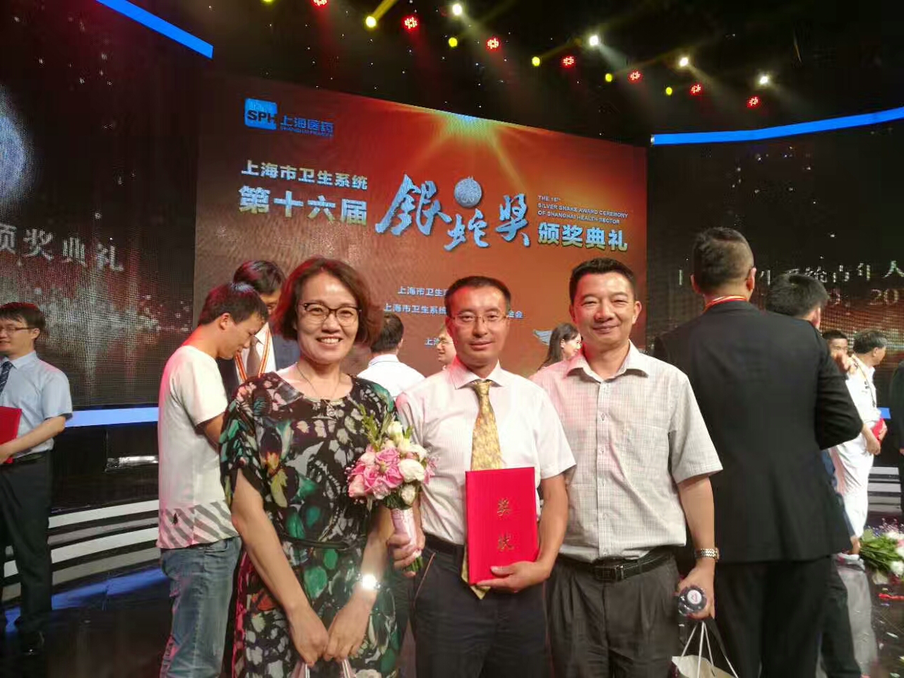 施劲东副主任医师在“银蛇奖”颁奖现场领奖