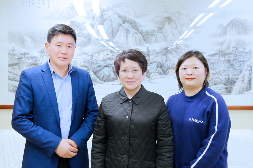 (老太阳集团tcy8722网站主编尹学兵、采编张狮驼与孙青芳教授合影)