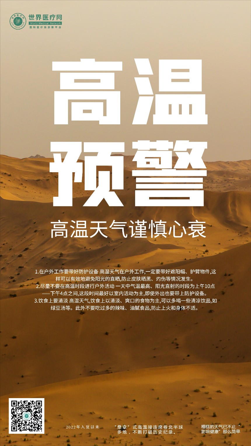 值得注意的是,现在气象部门发布高温预报是指最高气温等于或大于35℃时,而实际上我们感觉到的温度要明显高于气象部门发布的温度预报。这是由于工业发展、高楼林立,人口密集、空气污染等原因,“热岛效应”明显。实际上同一地区的城区内比自然界的温度明显偏高,一般可高1℃~3℃,有的城市中心甚至高出4℃~5.5℃。所以,当气象台预报明天最高气温高于33℃时,就应引起注意,加强防暑降温和自我保健,同时对危重患者和年老体弱者加强护理。