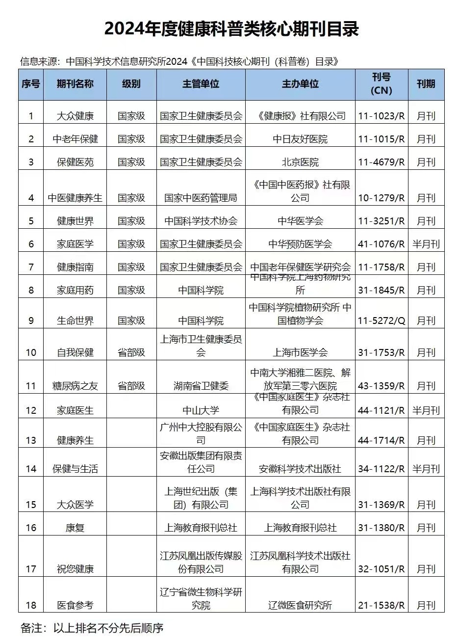 这些期刊不仅涵盖了广泛的科普领域,还将在国内医护人员职称评审、科普人才评价等方面产生重要影响。