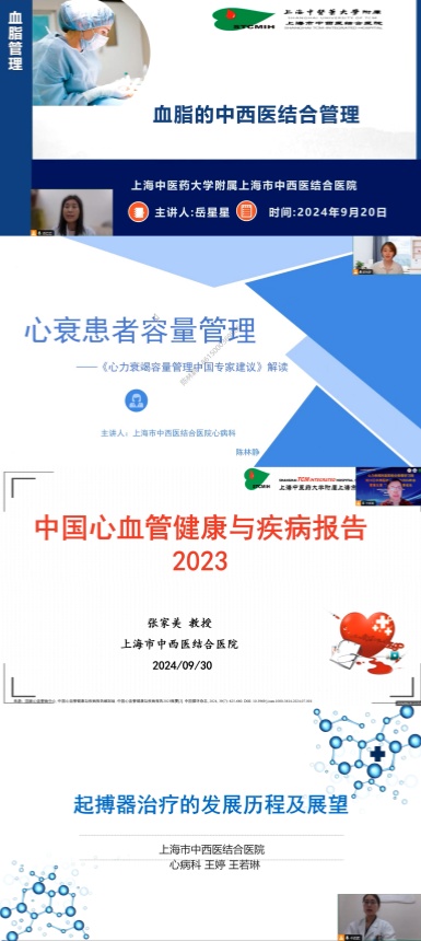 9月30日,上海市中西医结合医院心内科岳星星主治医师分享了“高脂血症的中西医管理”; 上海市中西医结合医院心内科陈林静主治医师分享了“心力衰竭的容量管理”; 上海市中西医结合医院心内科张家美主席分享了“2023年中国心血管健康与疾病报告”; 上海市中西医结合医院心内科王若琳医师、王婷主治医师一起分享了“起搏治疗的发展历程”。