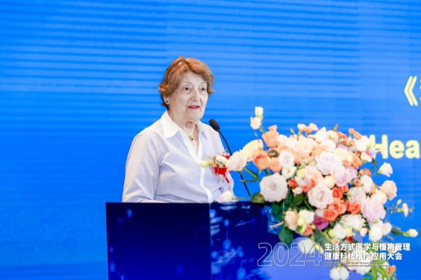世界营养、运动与健康委员会主席、美国遗传营养中心主席西莫普勒斯博士在会上发表了“科学洞见,适合你的最健康饮食”演讲。年届九十的西莫普勒斯博士是国际著名的营养学家,她曾发起并推动风靡全球的地中海饮食,她是世界上最早提出欧米伽6与欧米伽3平衡对健康重要性的人士,为人类的健康作出了卓越的贡献。