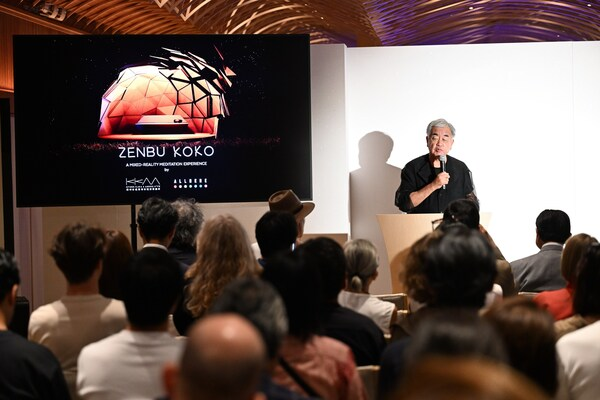 午后伊始,世界著名建筑设计师隈研吾登台演讲,发布由All Here开发的沉浸式冥想XR平台——ZenbuKoko。