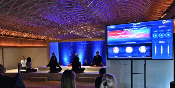观众首次得以实时“看到”冥想——脑部活动、专注度、自我意识与内心宁静被即时量化,并呈现在屏幕上。