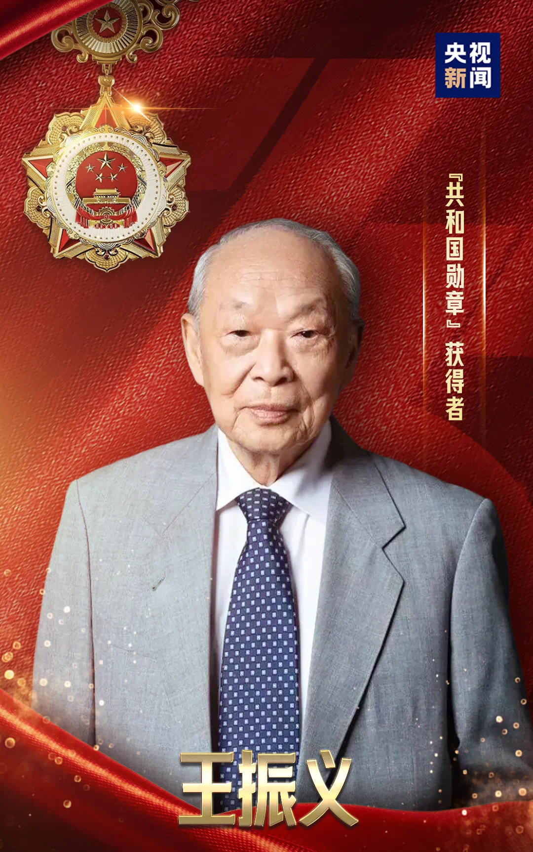 上海交通大学医学院附属瑞金医院终身教授,中国工程院院士,国家最高科学技术奖获得者王振义被授予“共和国勋章”。