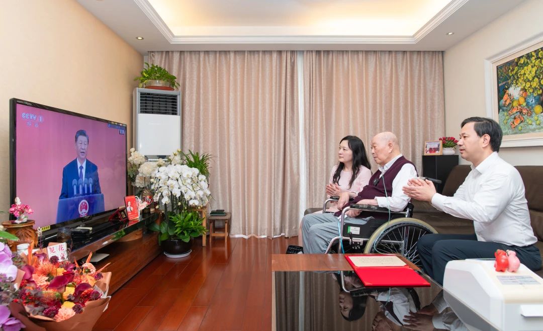 今天上午,上海瑞金医院党委书记瞿介明、瑞金医院副院长赵维莅来到王院士家中,陪同他一起收看了直播实况。当被问及此次获奖感受时,王振义院士表示:“非常荣幸,也非常高兴,希望年轻一代,第一要好好念书,第二要多多思考,第三要不断提出问题、进行钻研并勇于创新。”