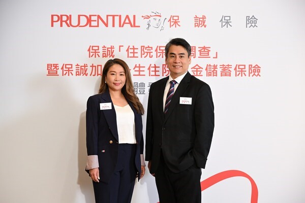 保诚保险首席客务营运及健康保障业务总监欧阳佩玲(图左),以及保诚保险首席产品管理总监冯伟成(图右)出席“保诚加护一生住院现金储蓄保险”发布传媒午宴