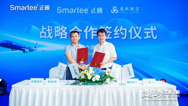 正雅创始人姚峻峰先生在仪式上致辞,高度赞赏春秋航空的经营理念,他表示:"春秋航空在业务增长和经营理念方面的卓越表现令人钦佩。正雅号的启航意义重大,它不仅是展示正雅品牌的空中名片,更是传递微笑和创新理念的使者。我们期待通过这一合作,进一步推动民族隐形正畸技术的全球交流与合作。"