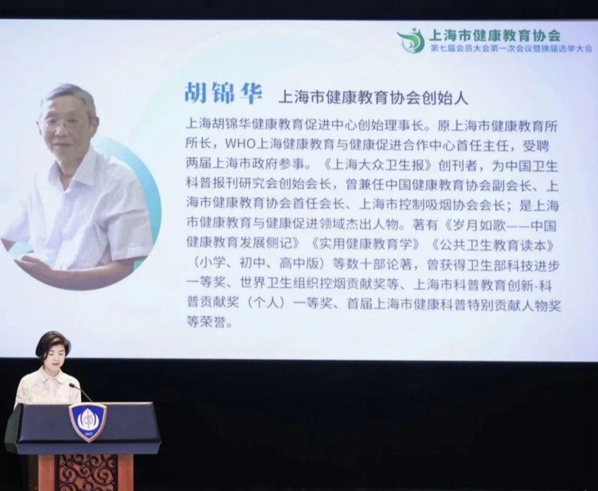 协会创始人、原上海市健康教育所所长胡锦华先生亲临会场,其创立协会时提出的“为社会全人群提供公益性健康教育服务”理念,始终是协会发展的灵魂。