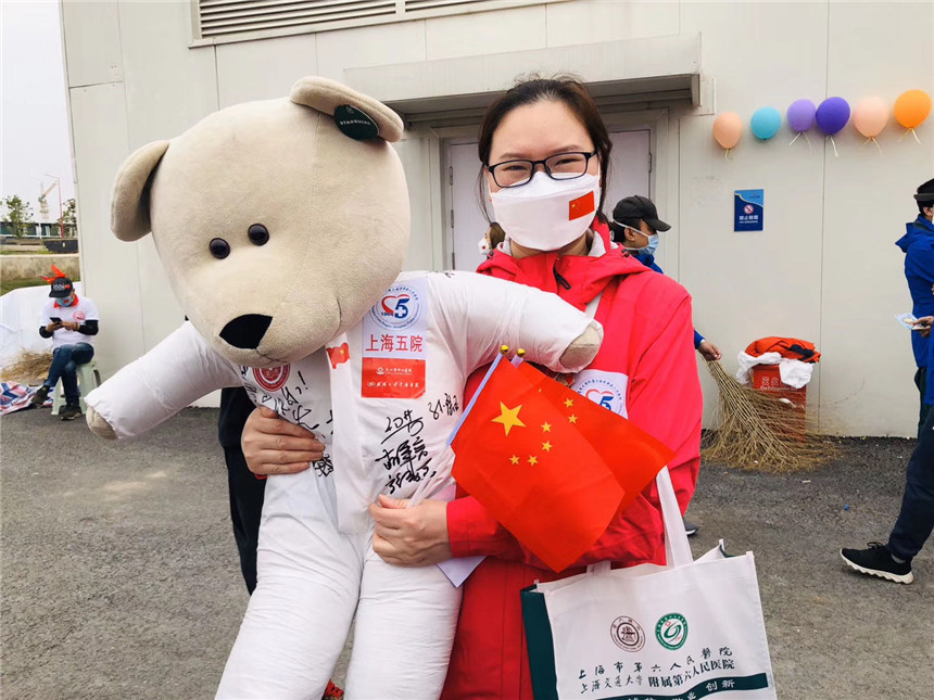当然我还要感谢我们所有队员有着良好的自我管理能力和乐观向上的精神面貌。对成绩,他们不患得患失,以大局为重。正因为他们的优异表现,我们这支队伍才如此优秀。最重要是感谢一直为我们付出的上海各界朋友和闵行后方,很多人为我们捐献的不仅仅是物资,更多的是爱。闵行区各级领导和五院后方班子成员、各职能科室以及临床科室主任们不仅提供了充足的后勤保障,而且关心我们所有队员的家人,才使得我们没有后顾之忧,全身心投入到工作中去。